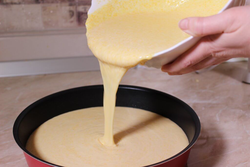 Alegem o tava – fie de chec, fie rotunda (eu am folosit una cu diametrul de 20 cm.), pe care o ungem cu putin ulei. Apoi turnam compozitia.