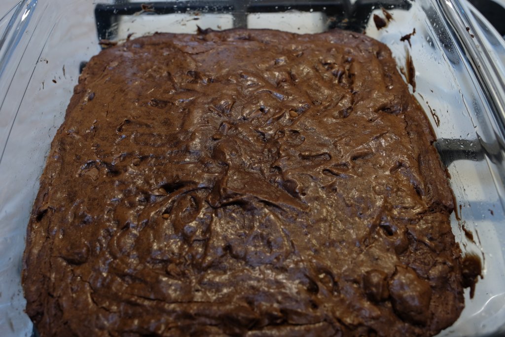 Pregătește o tavă pătrată (aprox. 21 x 21 cm): unge-o cu puțin ulei și tapeteaz-o cu hârtie de copt. Toarnă compoziția în tavă, nivelând ușor suprafața.